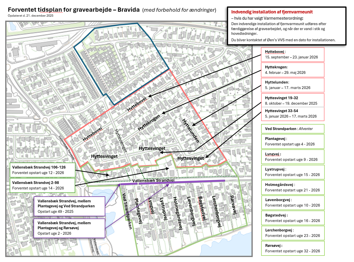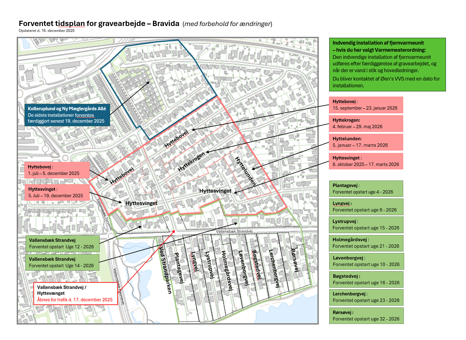 Bravida har justeret tidsplanen, da Vallensbæk Strands Vandforsyning samtidig har igangværende vandarbejder på flere af vejene.