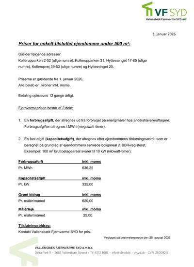 Takstblad 2025 Småforbrugere Kollerupparken Ulige Numre Og De 12